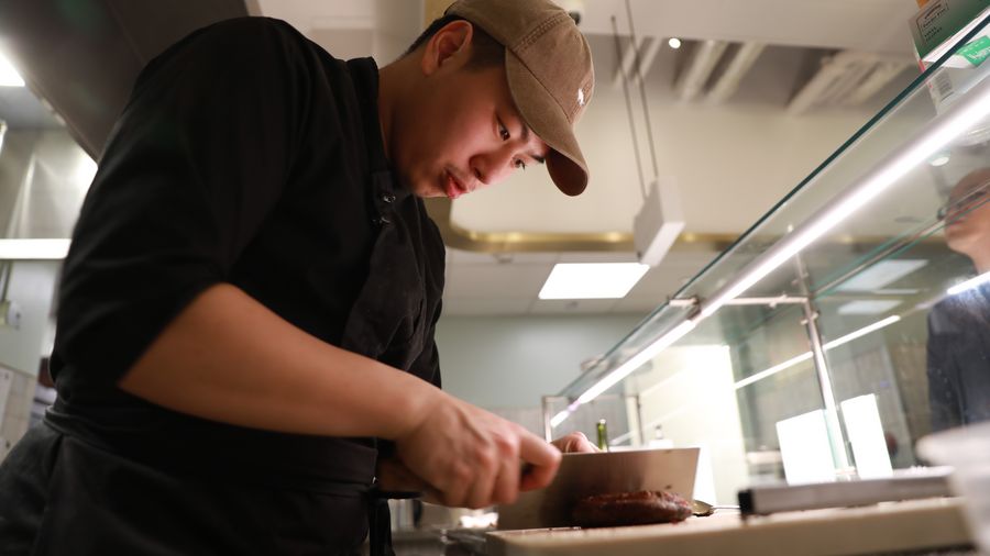 Chef Lucas Sin prepares food at Junzi Kitchen, in New York, the United States, Nov. 10, 2019. (Xinhua/Zhang Mocheng)
