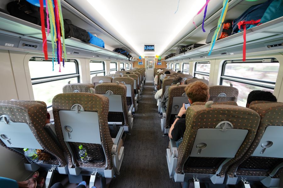 The first-class is air-conditioned and equipped with TVs. The conditions in the second and third-class cars are also much better than the old trains.