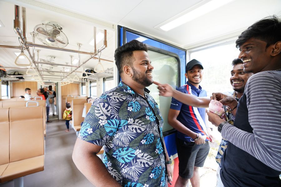 Sri Lankans are keenly interested in the newly-launched mountain train. Many of the passengers who took the ride put their thumbs up when they saw the Xinhua reporter.