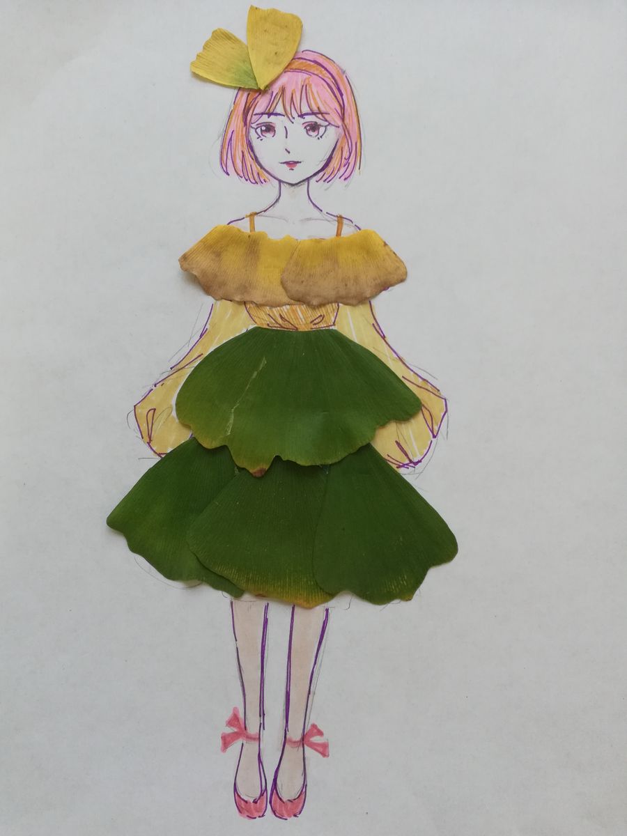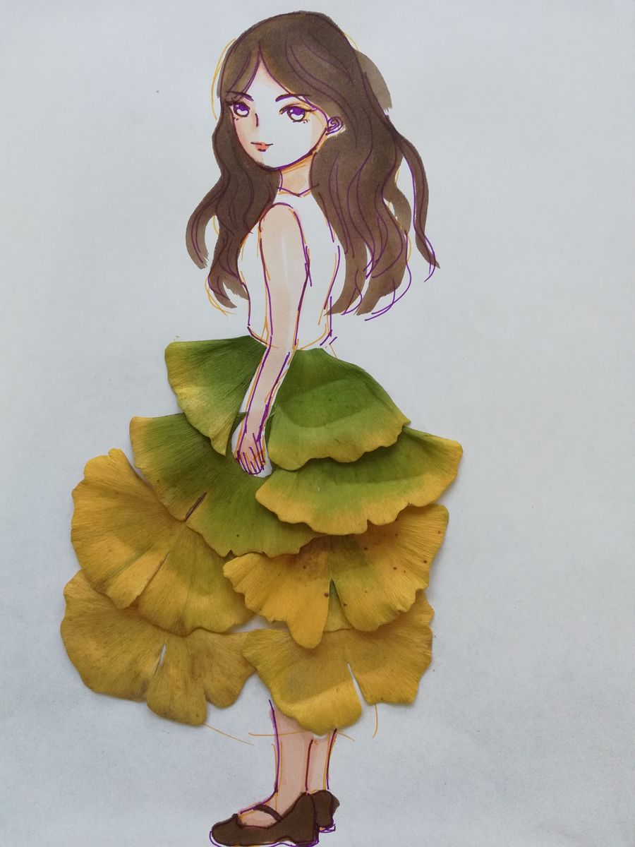 An illustrated girl wears a skirt made of leaves. (Photo provided to Xinhua)
