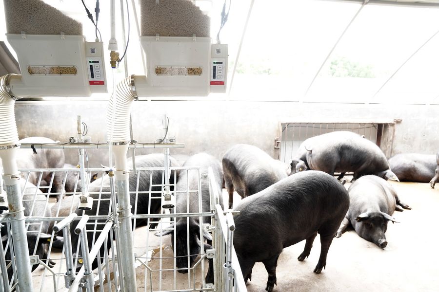 In a pig farm of Jingqishen Organic Agriculture Co., Ltd. in northeast China's Jilin Province, a specially designed 3D camera overhead can recognize the number of pigs in the pen with a single scan. With the "pig face recognition" technology, each pig can be accurately identified by the feeding robot, which in turn offers individualized feeding plans.