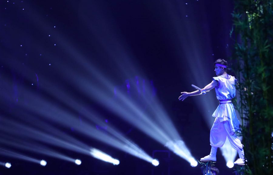 Actors perform at the opening ceremony of the 6th China International Circus Festival in Zhuhai, south China's Guangdong Province, Nov. 16, 2019. (Xinhua/Lu Ye)