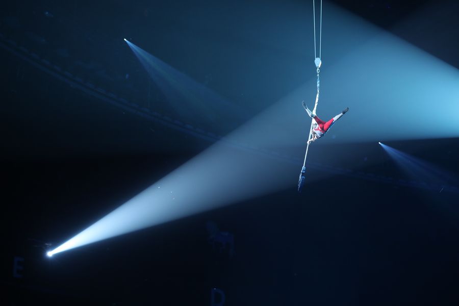 An acrobat performs at the opening ceremony of the 6th China International Circus Festival in Zhuhai, south China's Guangdong Province, Nov. 16, 2019. (Xinhua/Lu Ye)