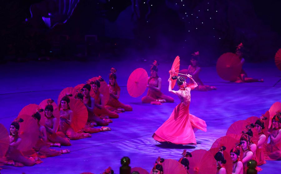 Actresses perform at the opening ceremony of the 6th China International Circus Festival in Zhuhai, south China's Guangdong Province, Nov. 16, 2019. (Xinhua/Lu Ye)