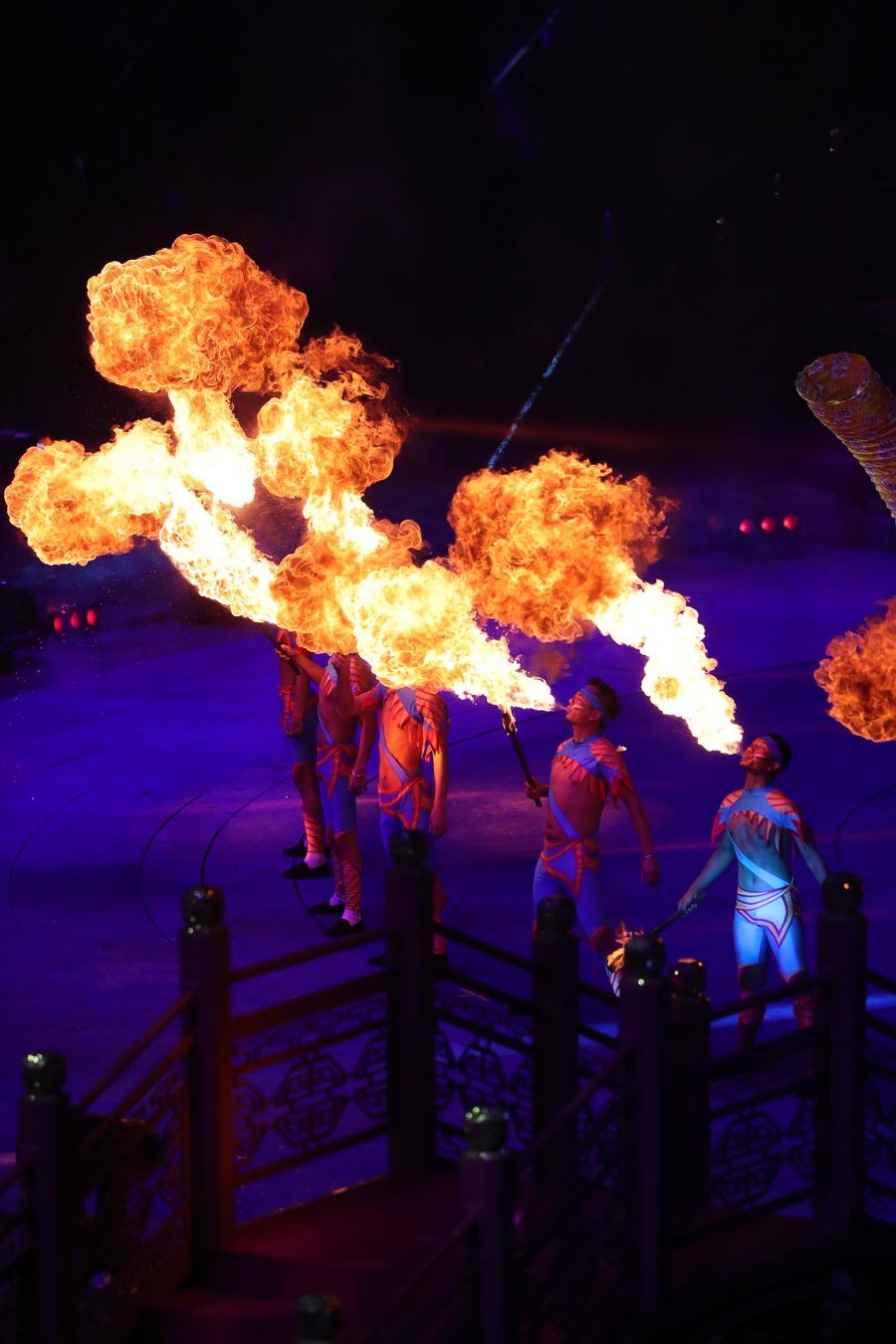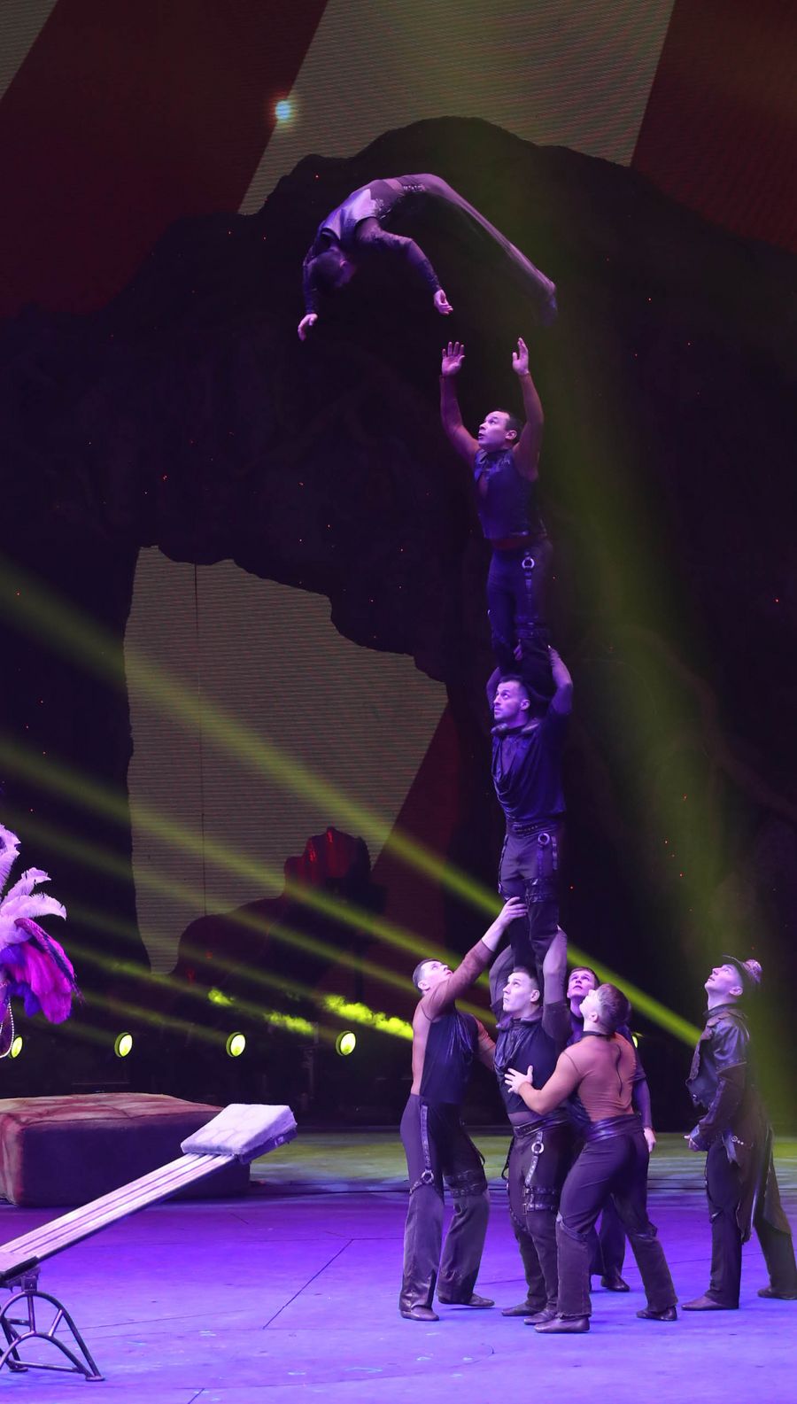 Acrobats perform at the opening ceremony of the 6th China International Circus Festival in Zhuhai, south China's Guangdong Province, Nov. 16, 2019. (Xinhua/Lu Ye)