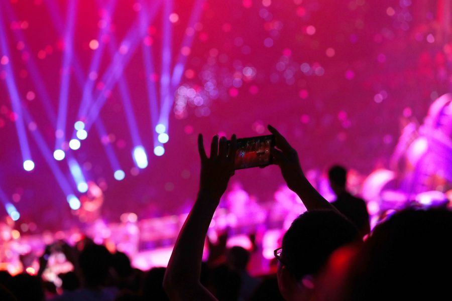 People take photos of the opening ceremony of the 6th China International Circus Festival in Zhuhai, south China's Guangdong Province, Nov. 16, 2019. (Xinhua/Lu Ye)
