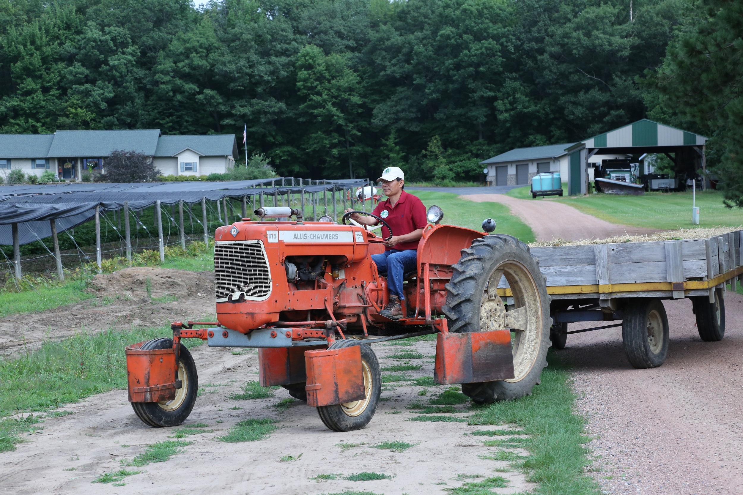 Ginseng grower Jiang Mingtao drives a tractor to inspect his ginseng farmland in Marathon County, Wisconsin, the United States, Aug. 13, 2019. (Xinhua/Liu Yanan)