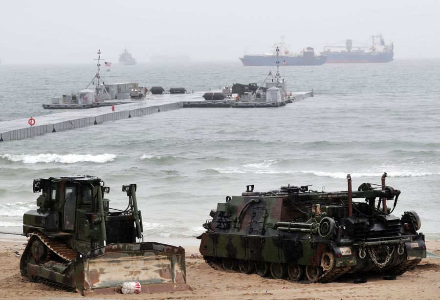 Photo taken on April 11, 2017 shows military vehicles during the U.S.-South Korea joint Exercise Operation Pacific Reach in Pohang, South Korea. (Xinhua/Lee Sang-ho)