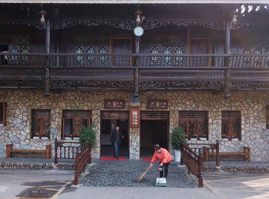 Photo taken on Dec. 5, 2017 shows a public toilet in Xijiang Qianhu Miao Village in Leishan County, southwest China's Guizhou Province. (Xinhua/Cai Xingwen)