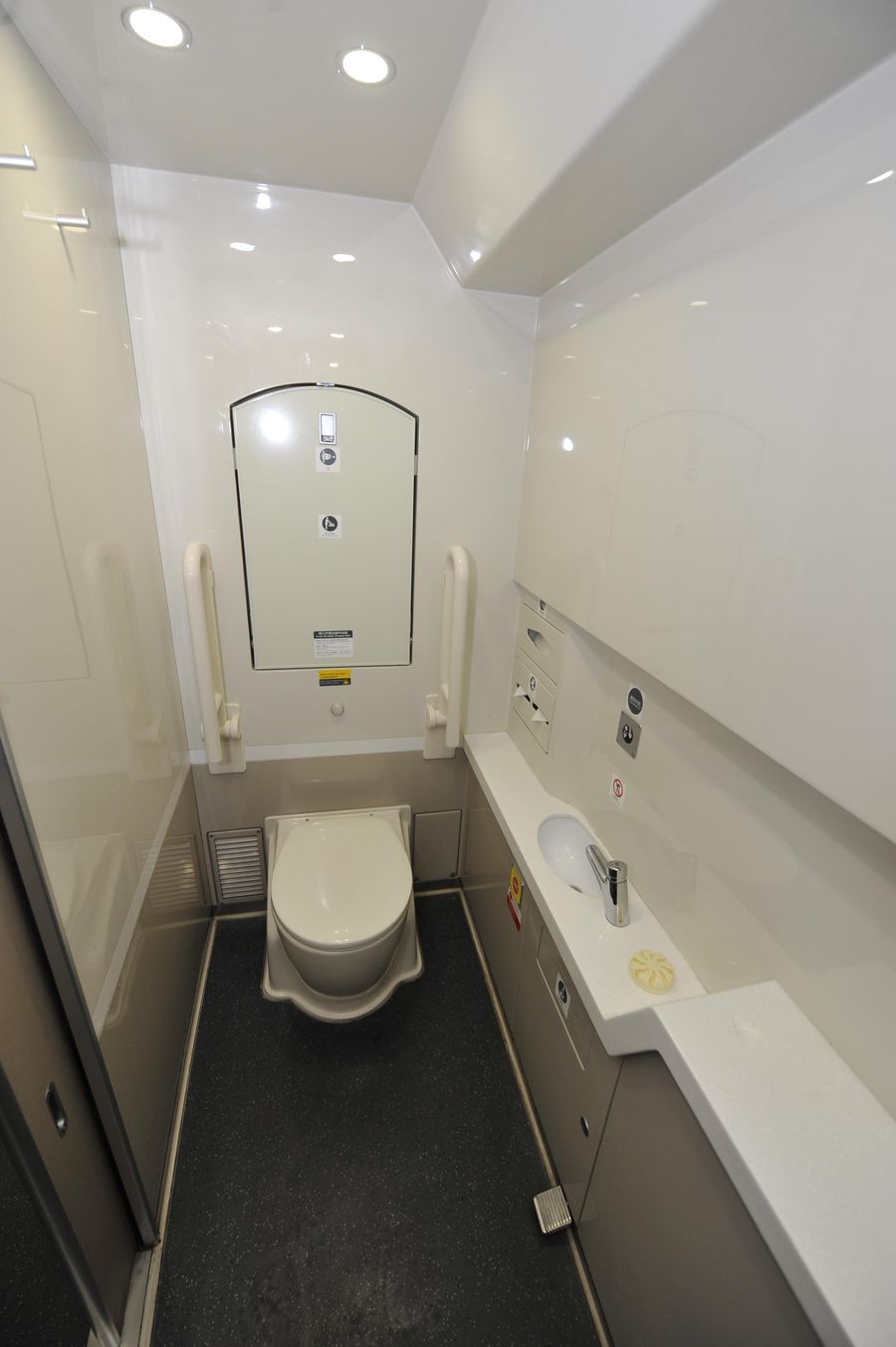 The interior of a toilet for disabled people on G80 express train is pictured during a trip to Beijing, capital of China, Dec. 22, 2012. (Xinhua/Chen Yehua)