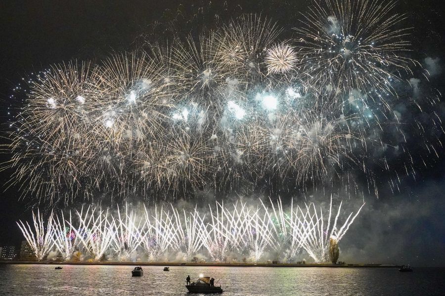 Fireworks are displayed over Daugava river during the Independence day celebration in Riga, Latvia. (Photo by Janis/Xinhua)