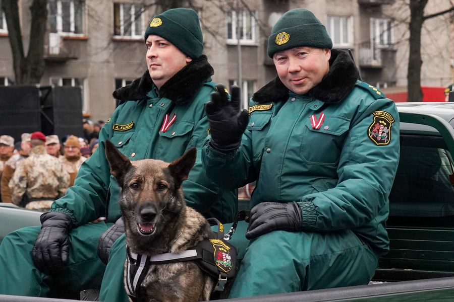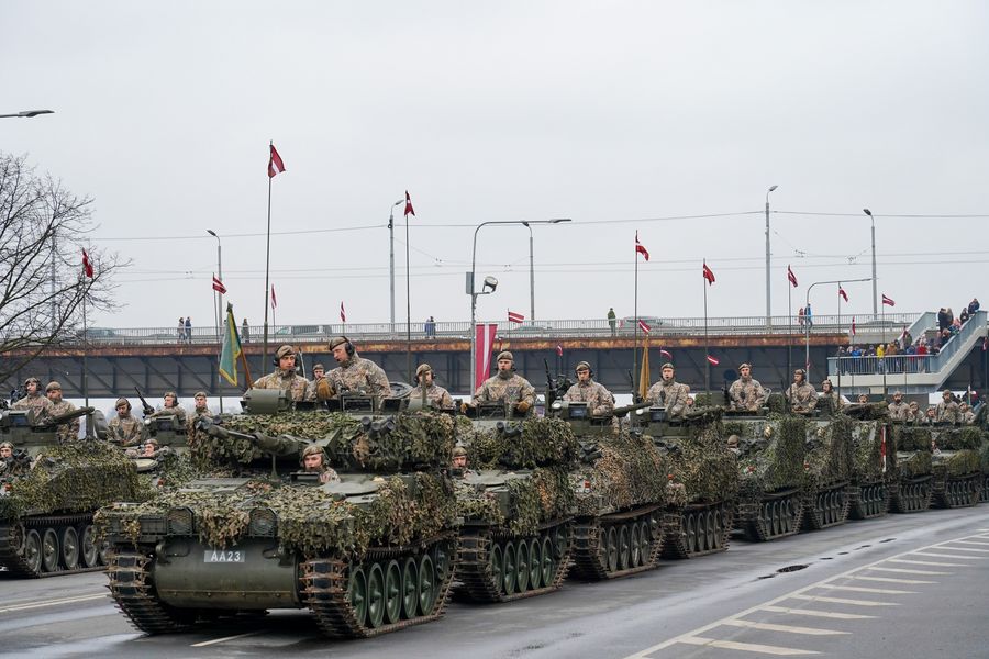 Soldiers take part in the Independence Day military parade in Riga, Latvia. (Photo by Janis/Xinhua)