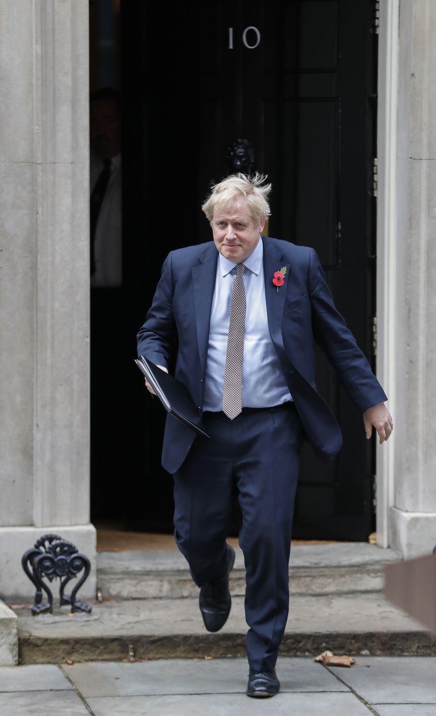 British Prime Minister Boris Johnson walks to make a statement outside 10 Downing Street in London, Britain on Nov. 6, 2019. Britain's general election campaign officially started after Prime Minister Boris Johnson had an audience with Queen Elizabeth II to formally ask her permission to dissolve parliament. (Xinhua/Han Yan)