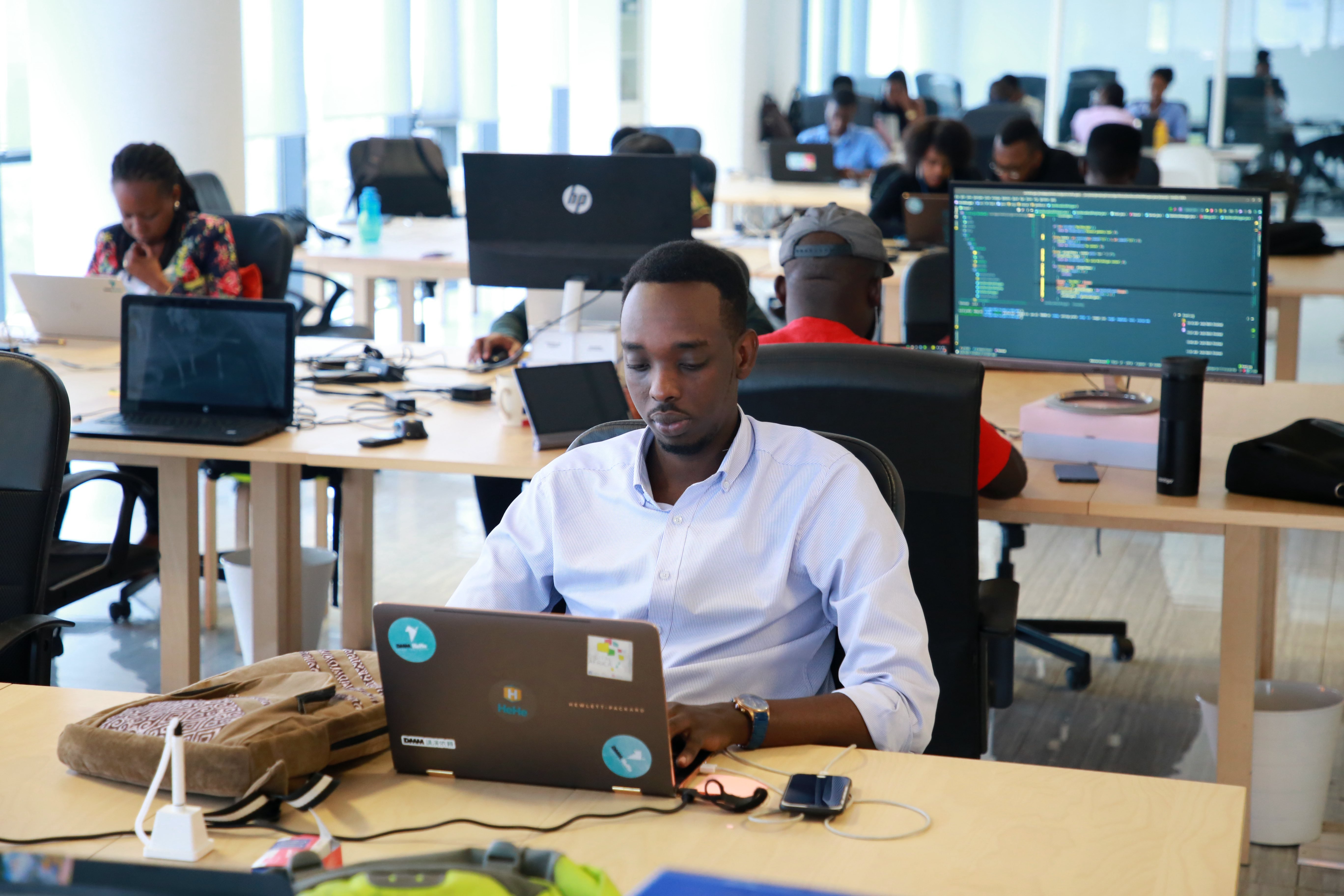 Members of e-commerce company DMM.HeHe Ltd. work at an office in Kigali, capital of Rwanda, Aug. 19, 2019. (Xinhua/Lyu Tianran)