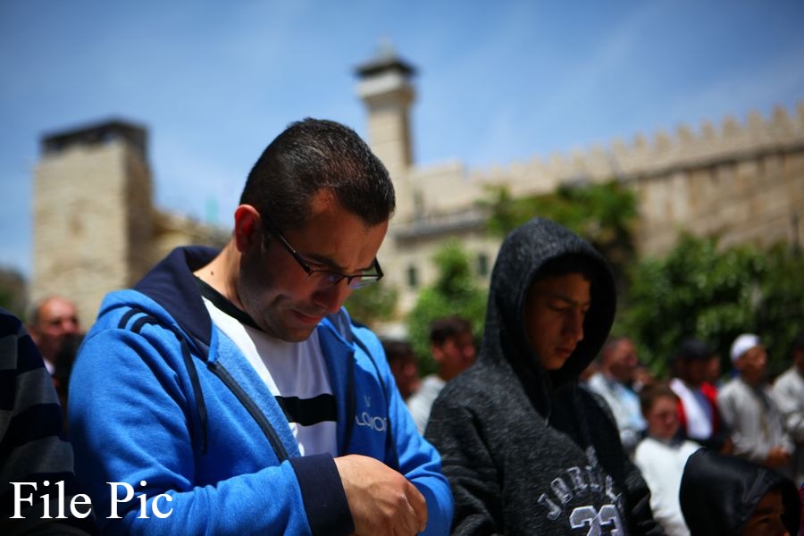 Palestinian Muslim worshippers pray outside Ibrahimi Mosque during the first Friday prayer of the holy month of Ramadan in the West Bank City of Hebron, on May 10, 2019. (Xinhua/Mamoun Wazwaz)