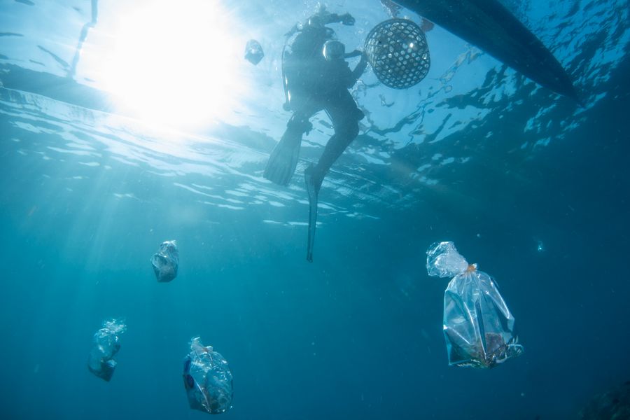 A researcher from Coral Planet, a coral research and protection organization in China, releases corals to the sea bottom in Celukan Bawang, Bali, Indonesia, Nov. 25, 2019.(Xinhua/Du Yu)