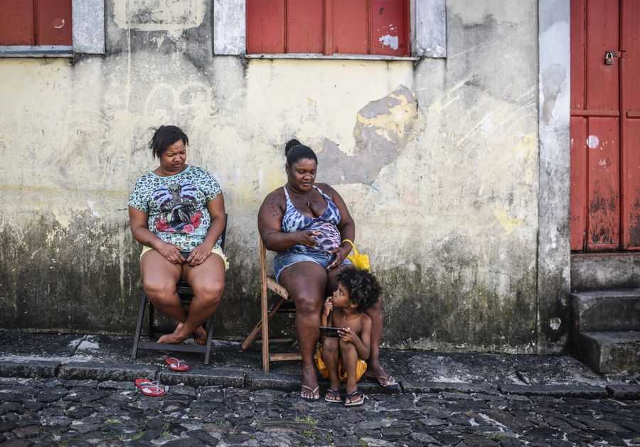 Local residents rest on the street in the old town of Salvador, in Salvador, Brazil, on Oct. 31, 2016. (Xinhua/Shen Hong)