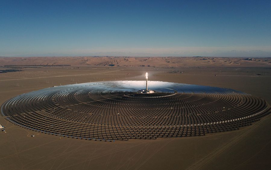 Aerial photo taken on Oct. 23, 2019 shows heliostats of a molten-salt solar thermal power plant in Dunhuang, northwest China's Gansu Province. (Xinhua/Ma Ning)