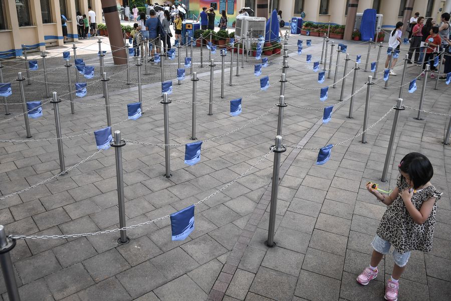 Photo taken on Aug. 20, 2019 shows the queuing area at the ticket office of the Ocean Park in Hong Kong, south China. Hong Kong's favorable international image and business environment has been tarnished by continuous violent protests since June. (Xinhua/Mao Siqian)