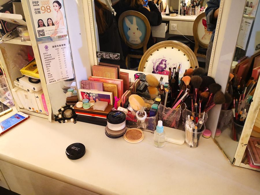Makeup tools and products at a dressing table on a styling shop in Changsha, capital city of central China's Hunan Province. (Xinhua/Zhang Xiaoying)