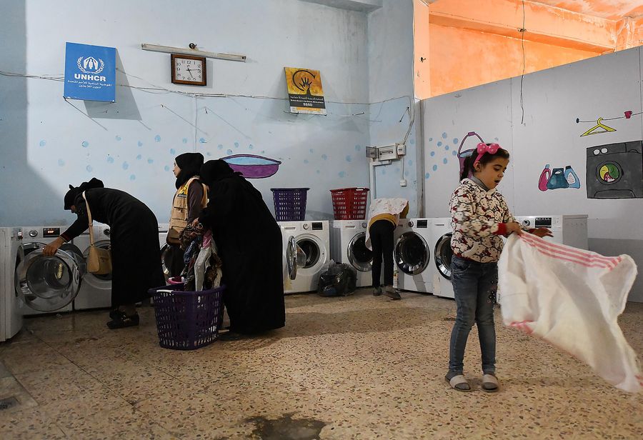 The laundry room was provided by a center, called Arabesque, which was established in the Qadi Askar area in eastern Aleppo by the Syrian Society for Social Development and the UN refugee agency UNHCR to help local families.