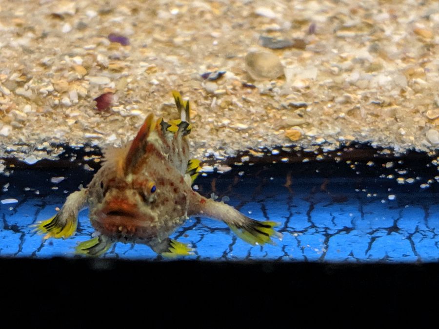 A juvenile Red handfish from an egg mass collected in 2018, currently on display at Seahorse World in Northern Tasmania. (Photo credit: IMAS)