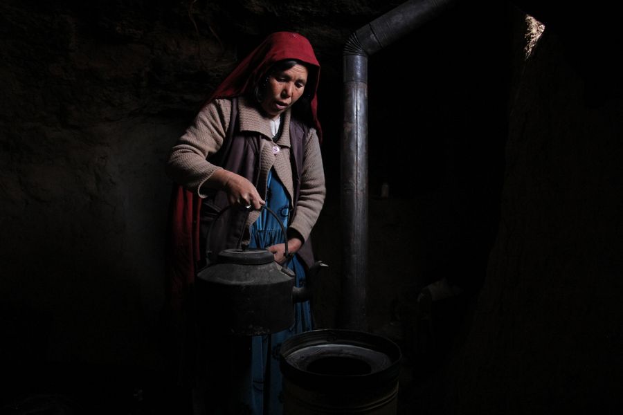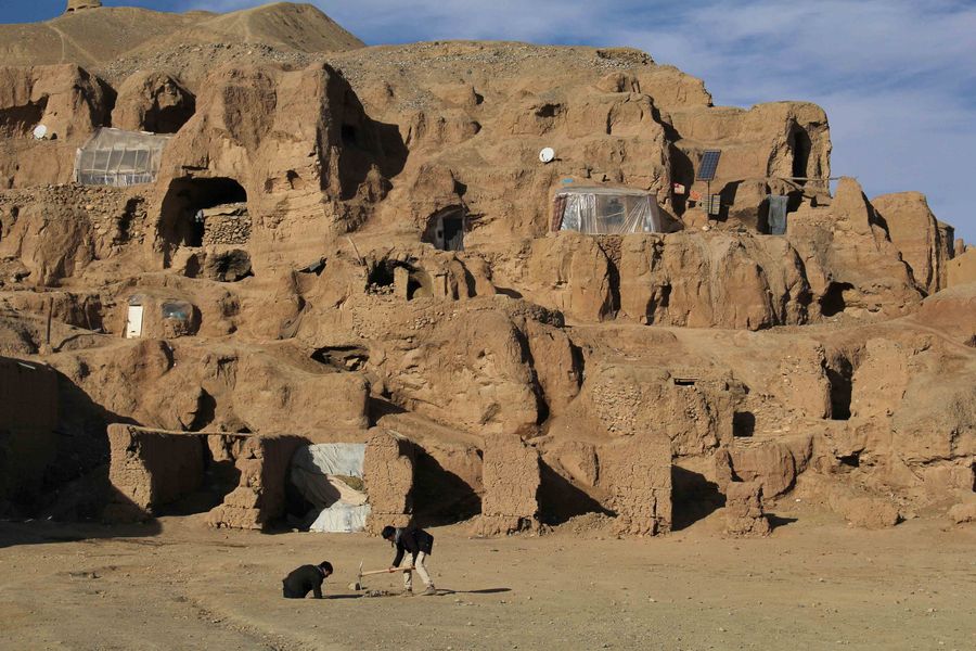 An Afghan woman works at her cave home in Bamiyan province, Afghanistan, Dec. 4, 2019. (Photo by Noor Azizi/Xinhua)
