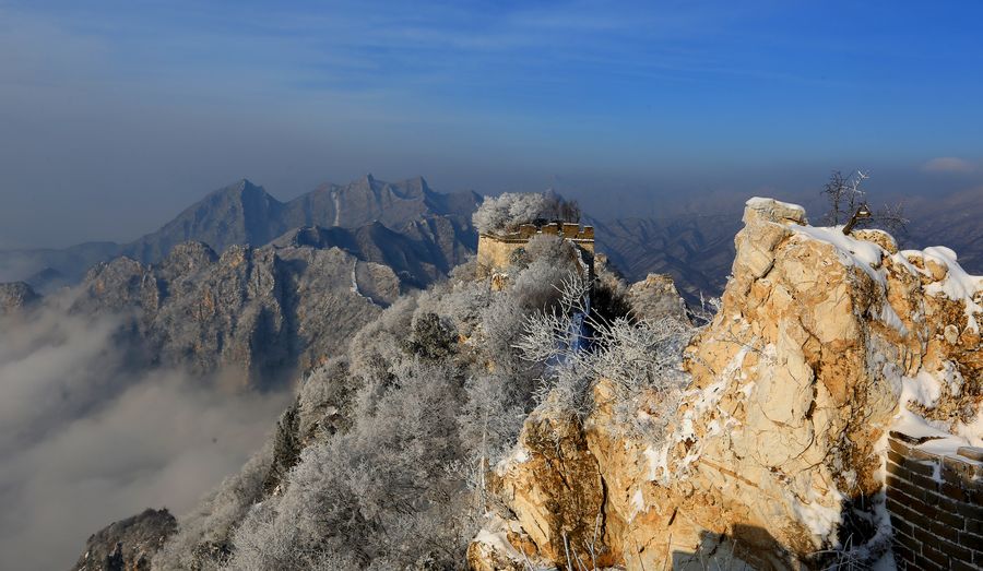 Photo taken on Nov. 30, 2019 shows the snow scenery at Jiankou Great Wall in Huairou District of Beijing, capital of China. (Xinhua/Bu Xiangdong)