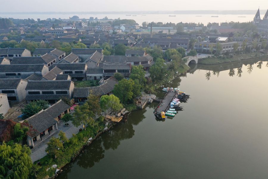 Photo taken on Oct. 19, 2019 shows Yaowan ancient town in Xinyi, east China's Jiangsu Province. Yaowan ancient town is a watery ancient town where the Beijing-Hangzhou Grand Canal meets the Luoma Lake. (Xinhua/Ji Chunpeng)