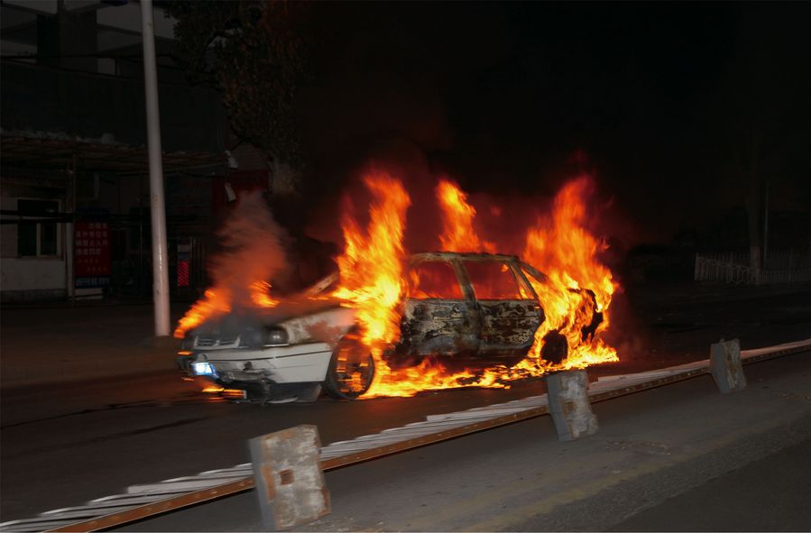 File photo on July 5, 2009, the "East Turkistan" forces in and out of China plotted, organized, and carried out the Urumqi riot which shocked the whole world. Thousands of terrorists launched attacks on civilians, government institutions, police stations, residential buildings, shops and the public transportation system. The riot caused the death of 197 people, leaving more than 1,700 people injured. A total of 331 shops and 1,325 vehicles, as well as many public facilities, were damaged or destroyed.(Xinhua)