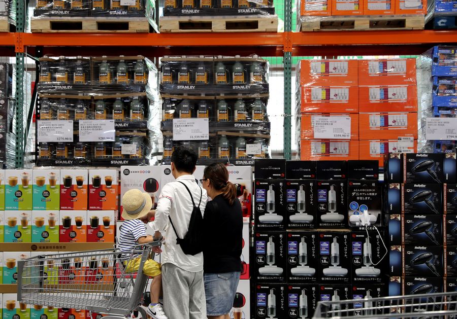 Customers shop at U.S. retail giant Costco Wholesale's first brick-and-mortar store in east China's Shanghai, Sept. 19, 2019. (Xinhua/Liu Ying)