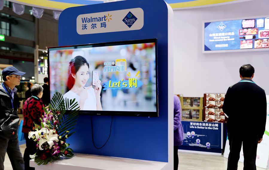The booth of Walmart at the Trade in Services area of the first China International Import Expo (CIIE) in Shanghai, east China, Nov. 8, 2018. (Xinhua/Fang Zhe)