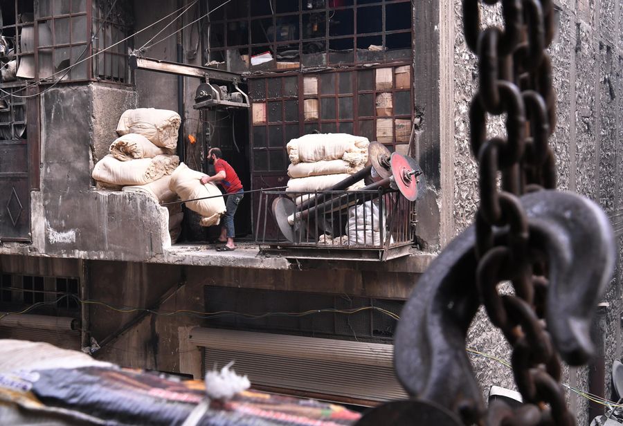 A Syrian man works in a damaged building in the al-Qatarji industrial zone in Aleppo, Syria, Nov. 25, 2019. (Xinhua/Ammar Safarjalani)