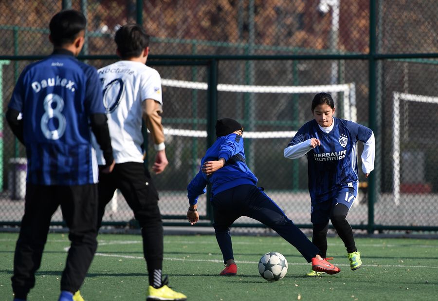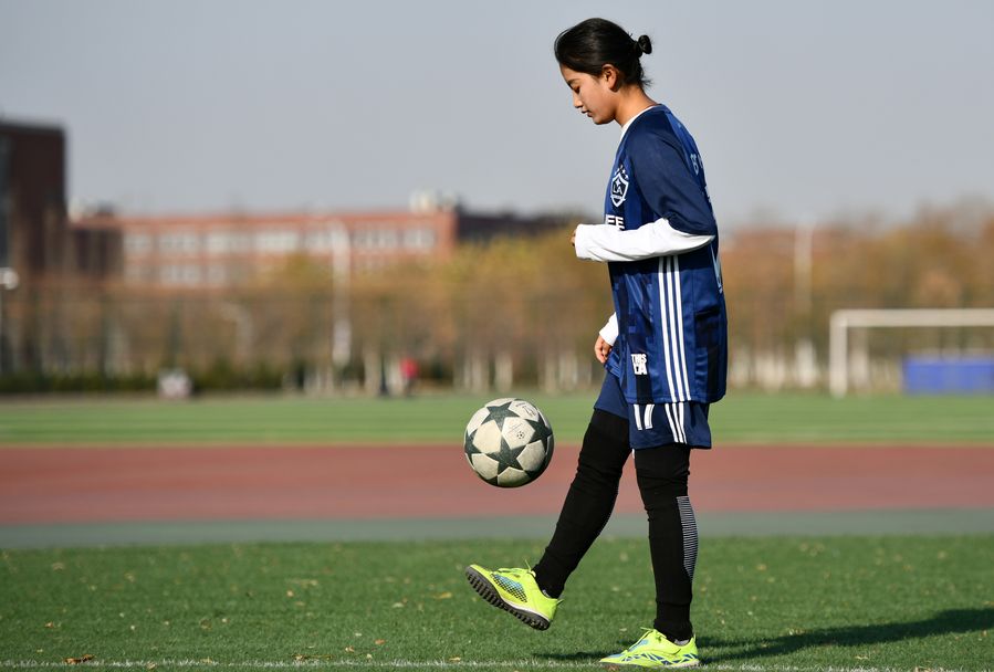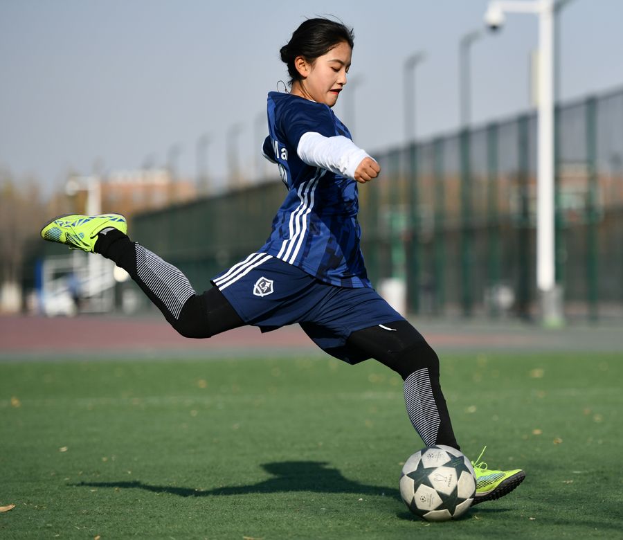 TIANJIN, Dec. 8 (Xinhua) -- On a football field in Tianjin, a petite Tibetan girl playing in a boy's team received a cross from a teammate, controled it and sent the ball flying into the net.