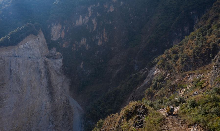 Aerial photo taken on Dec. 5, 2019 shows the construction site of the road linking Abuluoha Village with Weimu Village in Butuo County of Liangshan Yi Autonomous Prefecture, southwest China's Sichuan Province. (Xinhua/Jiang Hongjing)