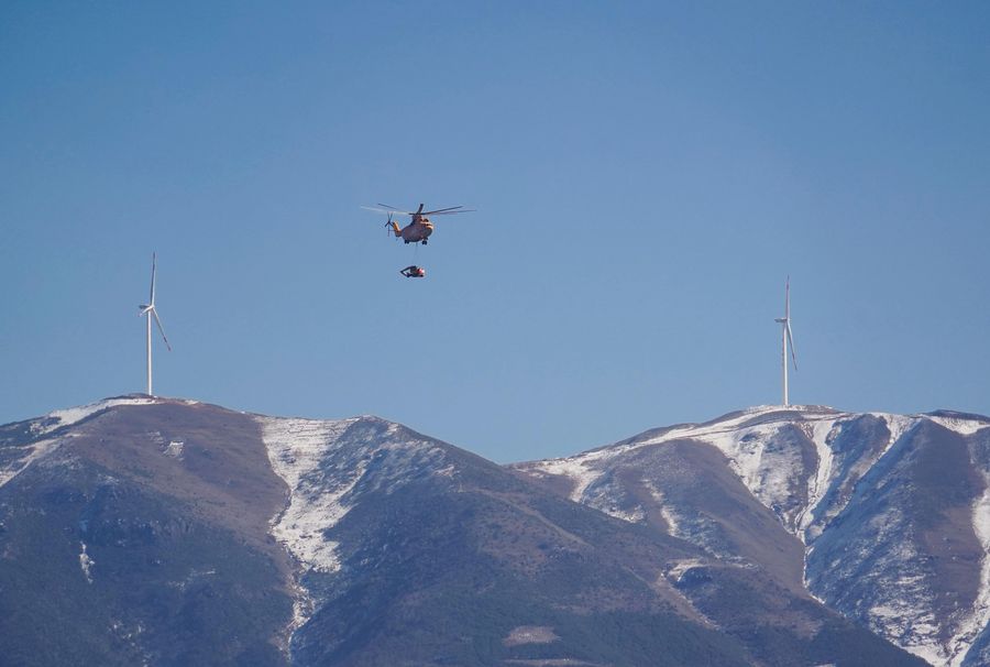 Mi-26 heavy transport helicopter loaded with an excavator arrives at Abuluoha Village in Butuo County of Liangshan Yi Autonomous Prefecture, southwest China's Sichuan Province, Dec. 7, 2019. (Xinhua/Jiang Hongjing)