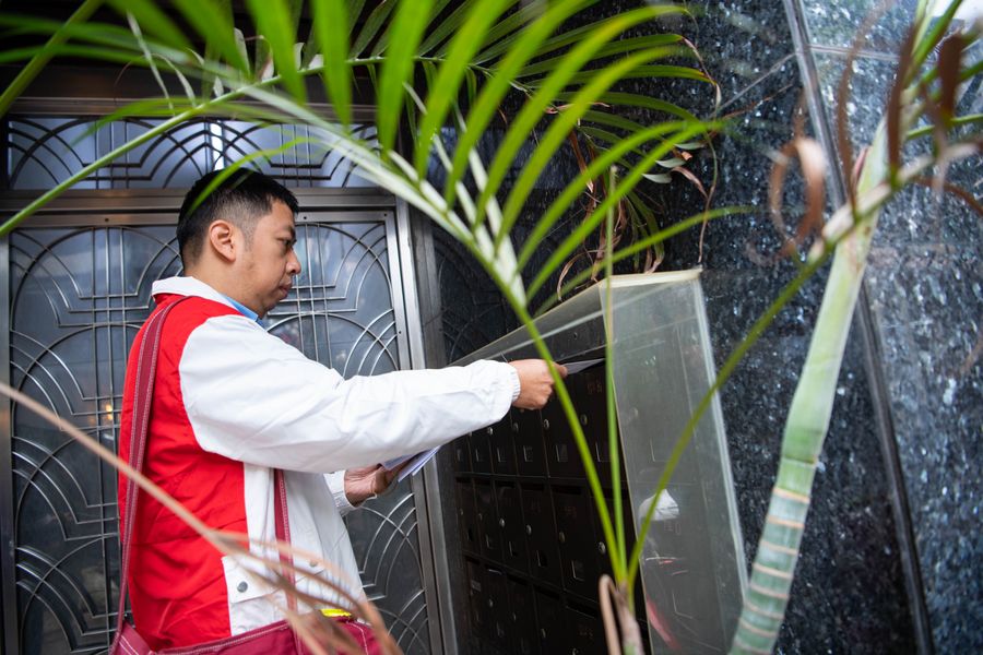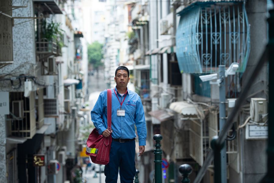Postman Lao Chan Koi, who has been working for four years, walks to deliver mails in Macao, south China, Dec. 5, 2019. (Xinhua/Cheong Kam Ka)
