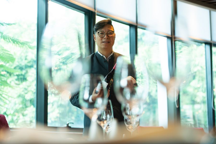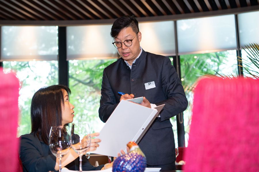 Chang Lat Seng, a staff member of the restaurant for teaching at the Macao Institute for Tourism Studies who has been working for 22 years, is seen at the restaurant in Macao, south China, Nov. 26, 2019. (Xinhua/Cheong Kam Ka)