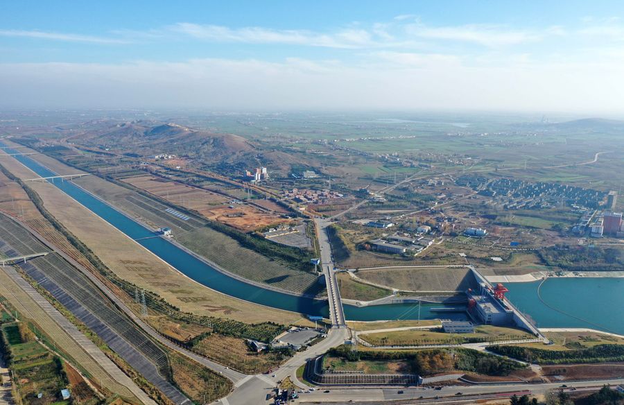 Aerial photo taken on Dec. 9, 2019 shows a part of the middle route of the south-to-north water diversion project in Xichuan County of Nanyang, central China's Henan Province. (Xinhua/Feng Dapeng)