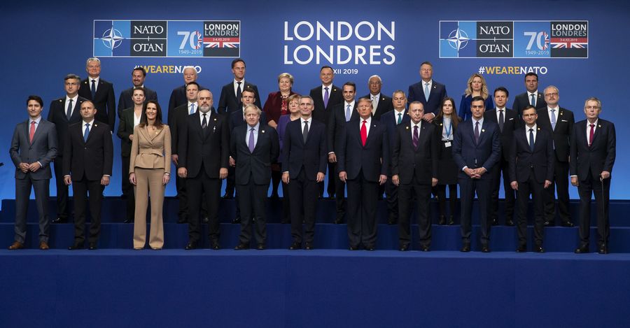NATO leaders pose for a group photo at the NATO Summit in London, Britain, on Dec. 4, 2019. (Xinhua/Han Yan)
