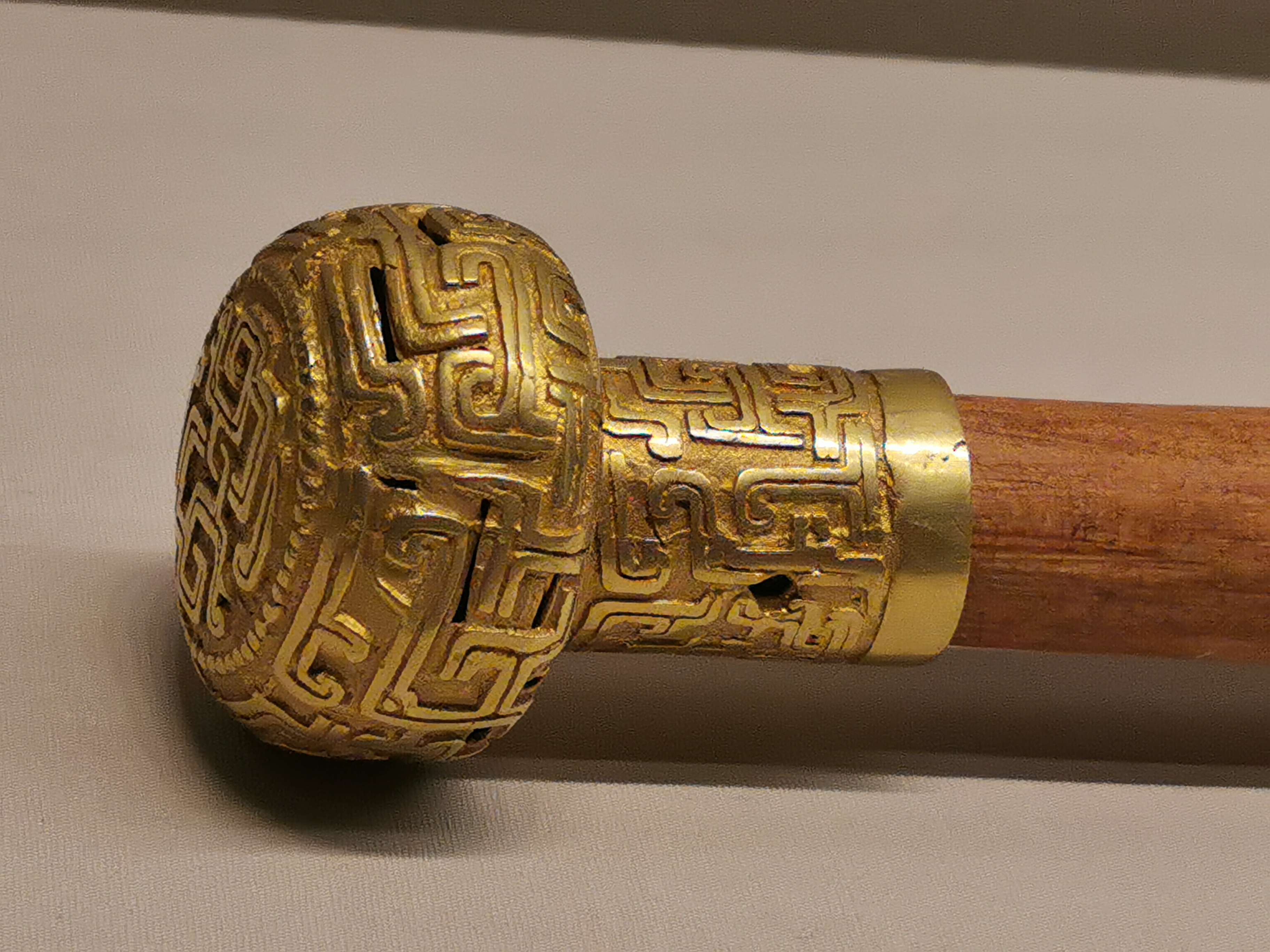 A gold decoration at the end of a scepter displayed in the exhibition, Dec. 13, 2019. (Xinhua/Yao Youming)