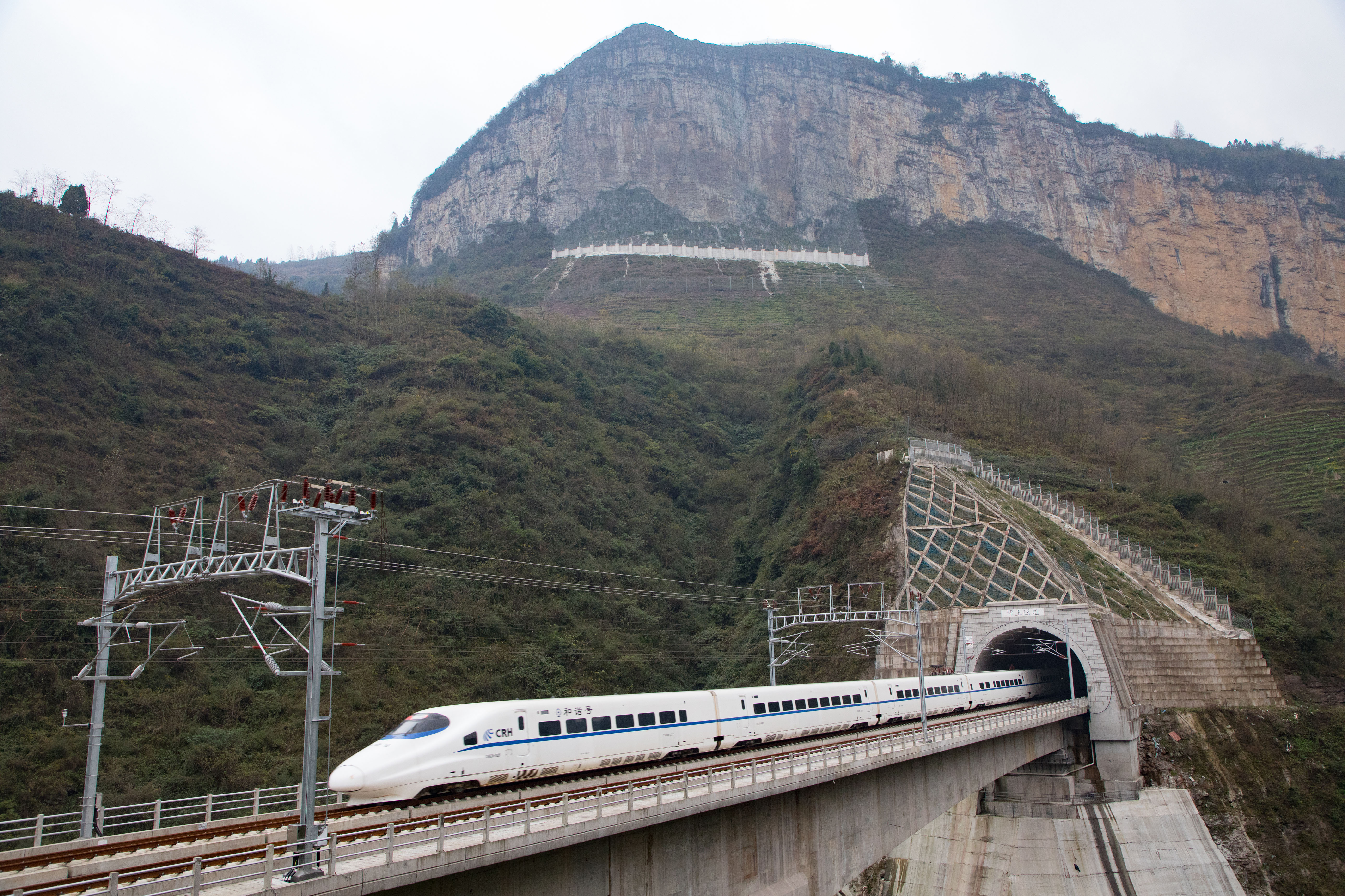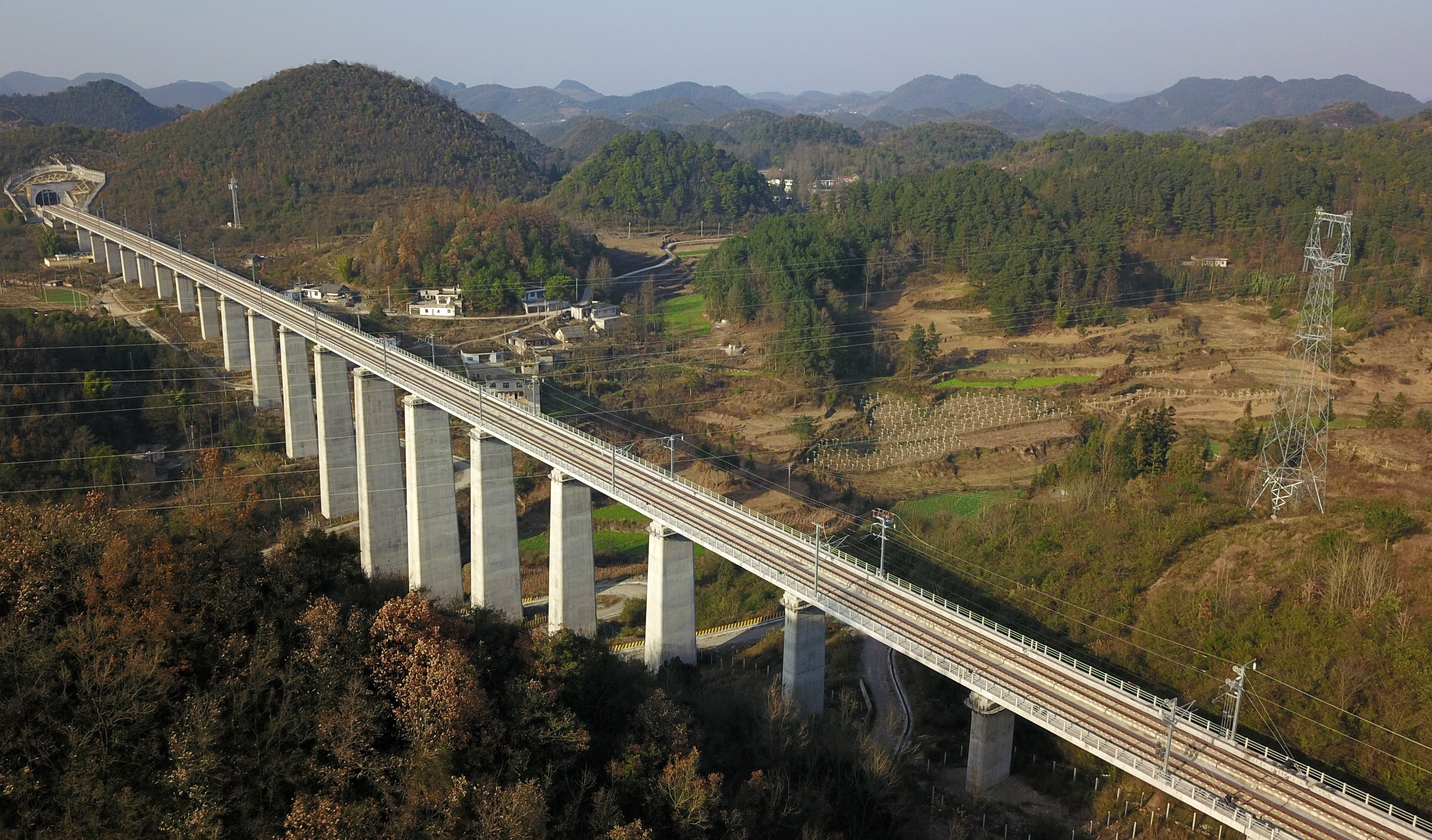 The construction of Chengdu-Guiyang Railway started in 2013. A 370-km long section of the railway has 85 percent of its route running on bridges and in tunnels.