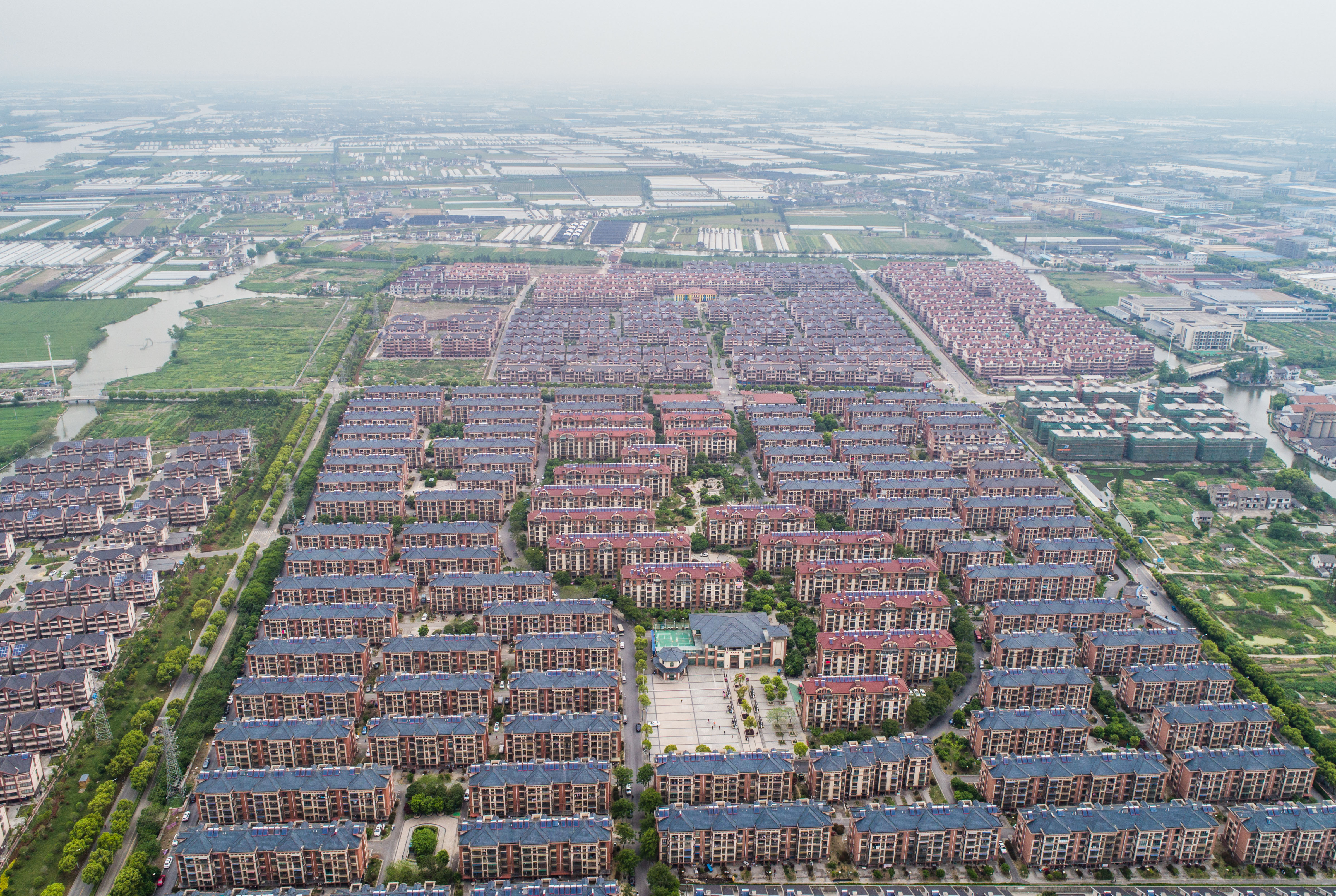 Photo taken by a drone on April 21, 2018 shows Taoyuanxincun Community in Yaozhuang Town, Jiashan County, east China's Zhejiang Province. (Xinhua/Xu Yu)