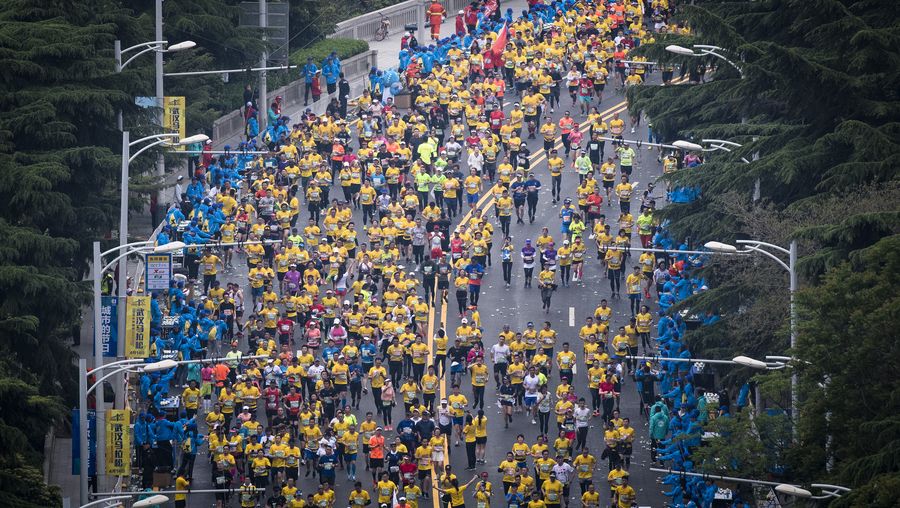 About 24,000 participants from all over the world took part in the 2019 Wuhan Marathon in Wuhan, capital city of central China's Hubei Province, April 14, 2019. (Xinhua/Xiao Yijiu)