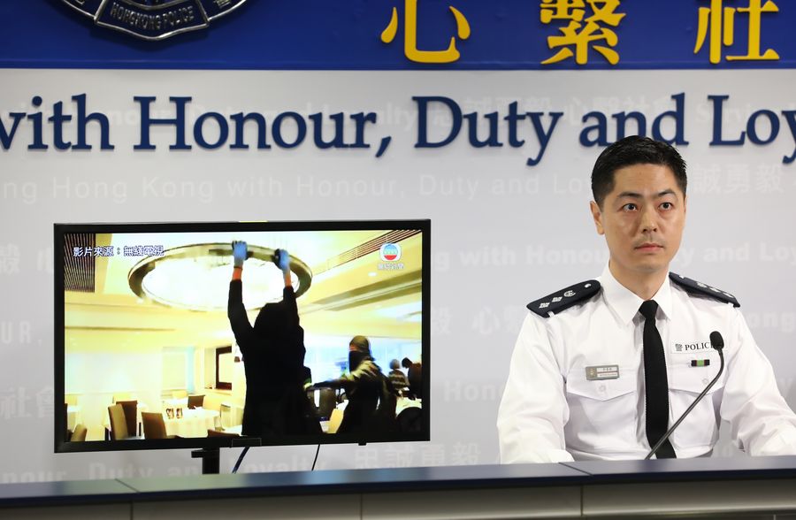 Chief Superintendent of Police Public Relations Branch Kwok Ka-chuen attends a press conference at the headquarters of the Hong Kong Police Force in south China's Hong Kong, Dec. 16, 2019. (Xinhua)