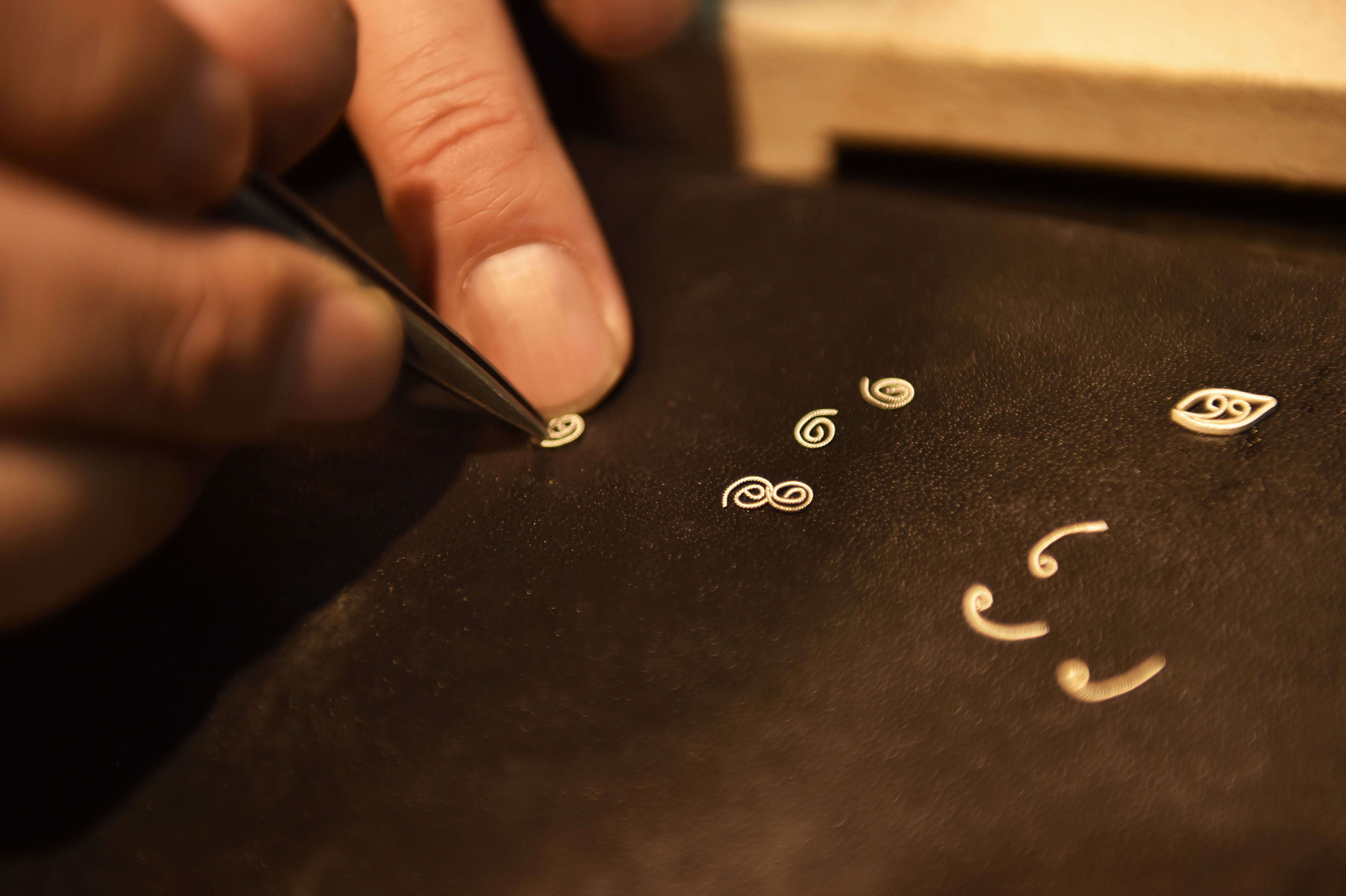 BEIJING, Dec. 19, 2019 (Xinhua) -- Filigree inlay is crowned as one of the eight traditional arts and crafts of Beijing. With gold or silver as raw material, filigree inlay craftsmen apply complex techniques such as knitting and welding so as to shape metal wires into various forms. Then they create fluted patterns on the wires with techniques such as hollowing and cutting for gems to be inserted. Once a royal technique, filigree inlay is listed as one of the national intangible cultural heritage.