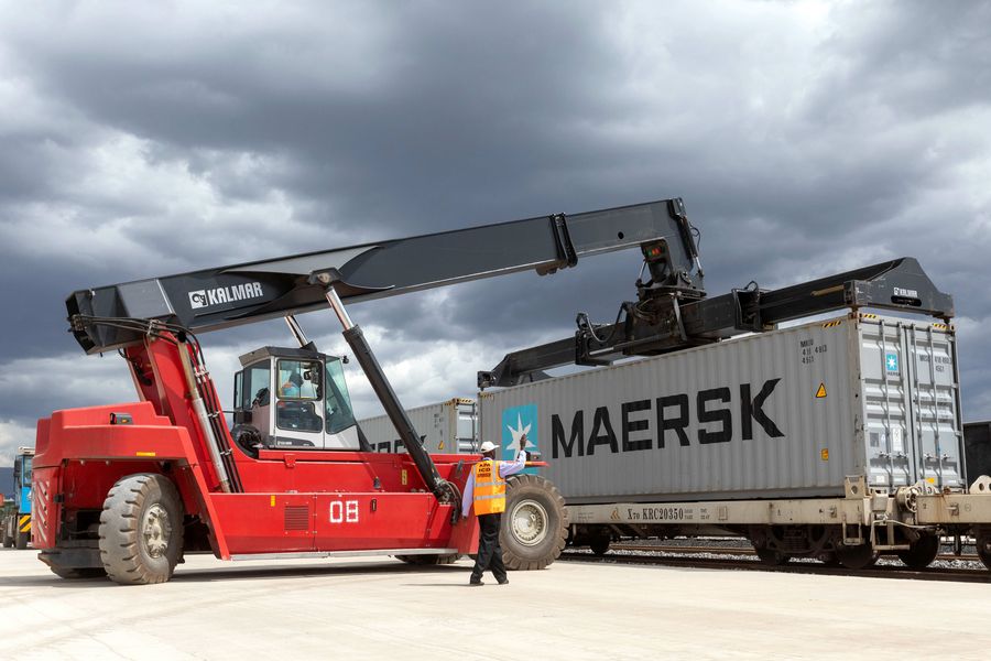A container is unloaded at the Naivasha Inland Container Depot in Kenya, on Dec. 17, 2019. (Xinhua/Wang Teng)