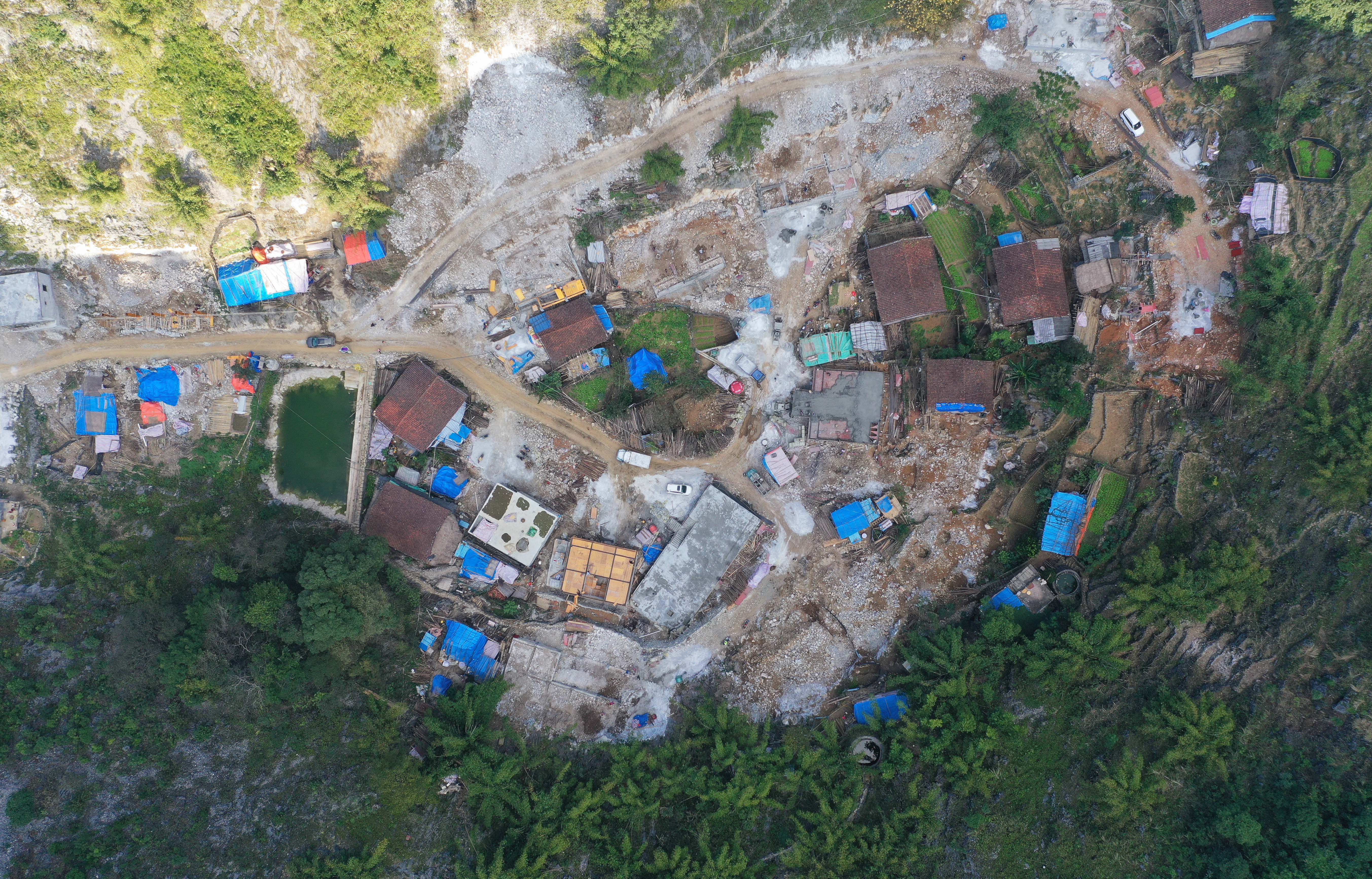 Aerial photo taken on Nov. 12, 2019 shows cottages being renovated in Bahao Village of Dahua Yao Autonomous County, south China's Guangxi Zhuang Autonomous Region. (Xinhua/Huang Xiaobang)