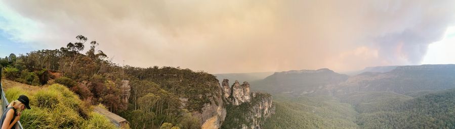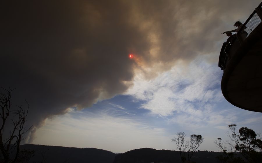 Citizens observe the condition of the bushfire in the smoke-shrouded Blue Mountain area, New South Wales, Australia, Dec. 21, 2019. (Xinhua/Bai Xuefei)