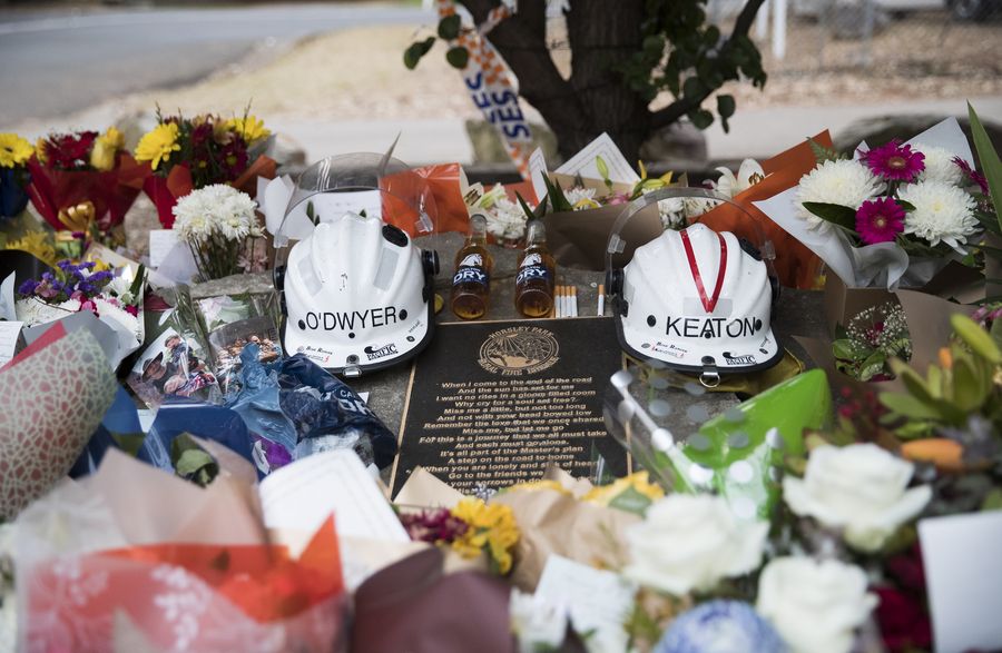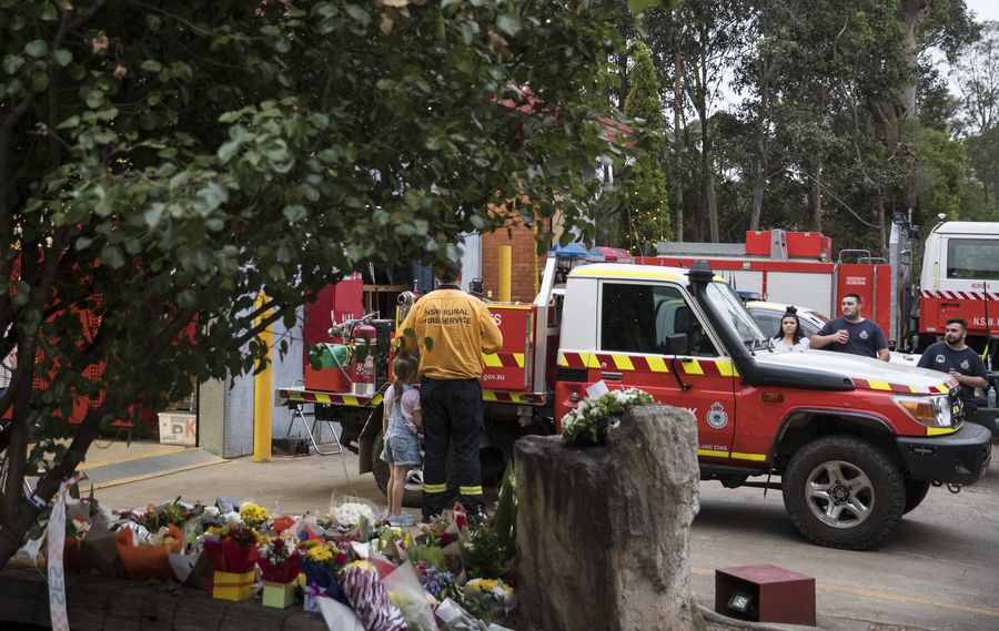 Citizens mourn for the two volunteer firefighters who died in combat against the bushfire at the Horsley Park Rural Fire Service (RFS) in New South Wales, Australia, Dec. 21, 2019. (Xinhua/Bai Xuefei)